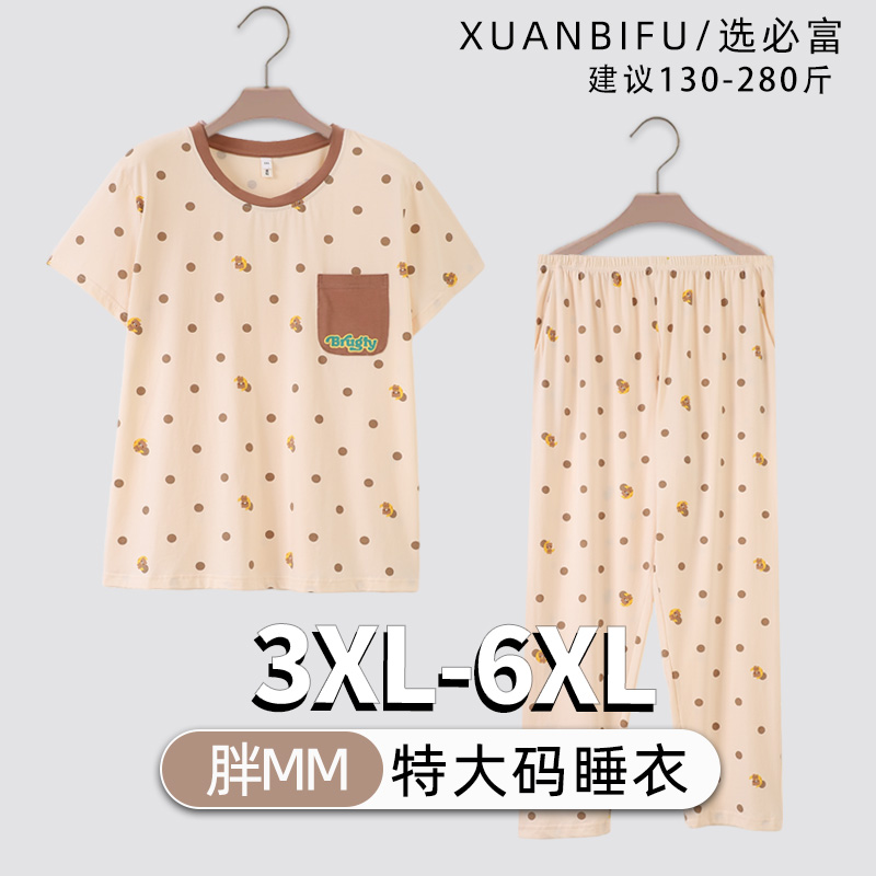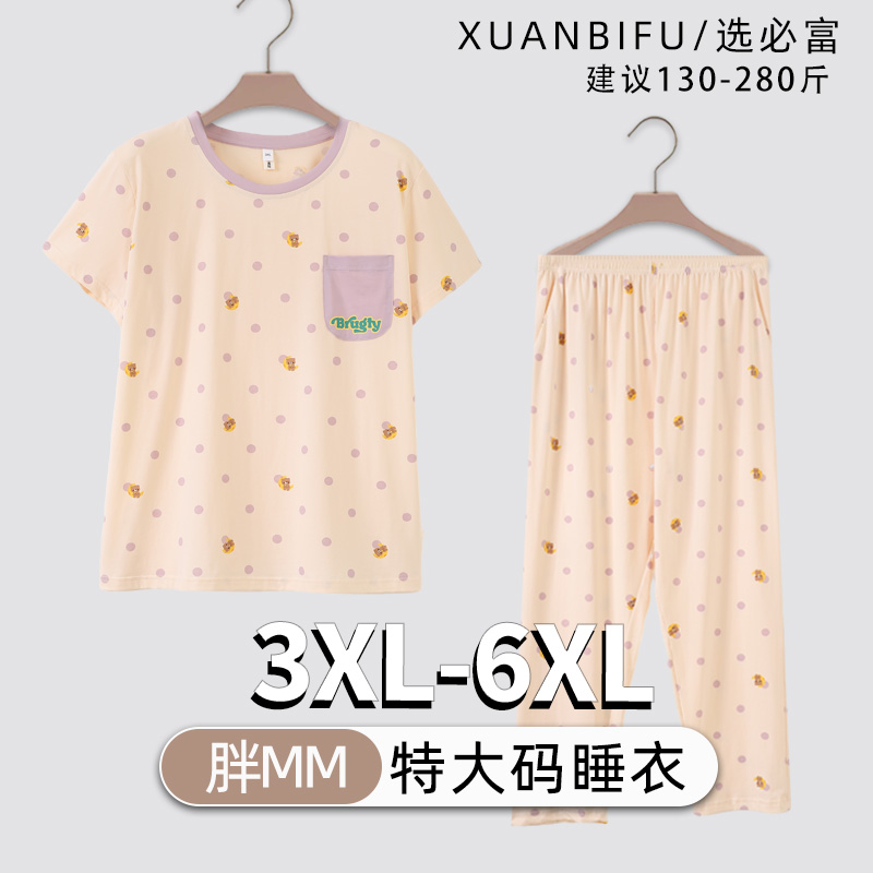 夏季女士特大码睡衣200斤胖mm纯棉短袖长裤卡通宽松套装家居服