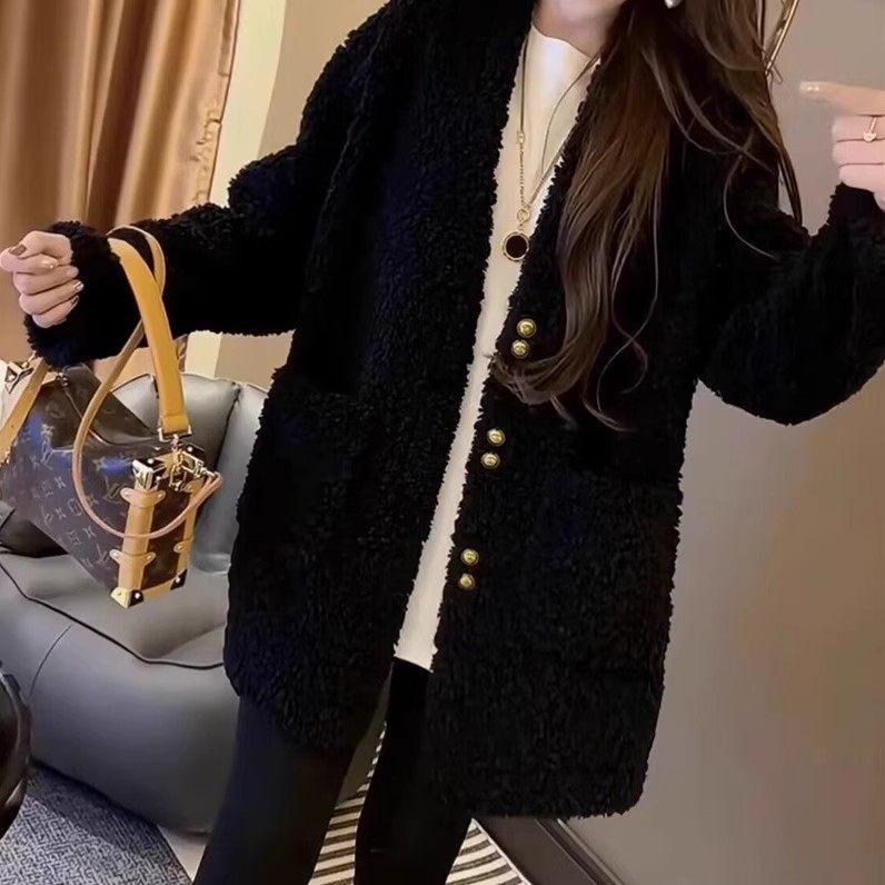 欧洲站网红爆款轻奢气质减龄女士宽松韩版中长款羊羔毛保暖外套潮