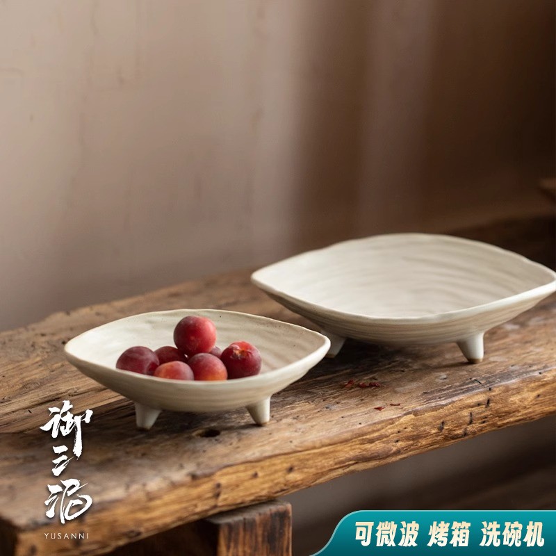 复古不规则年轮盘家用高级感陶瓷水果盘子创意酒店餐厅意境菜摆盘
