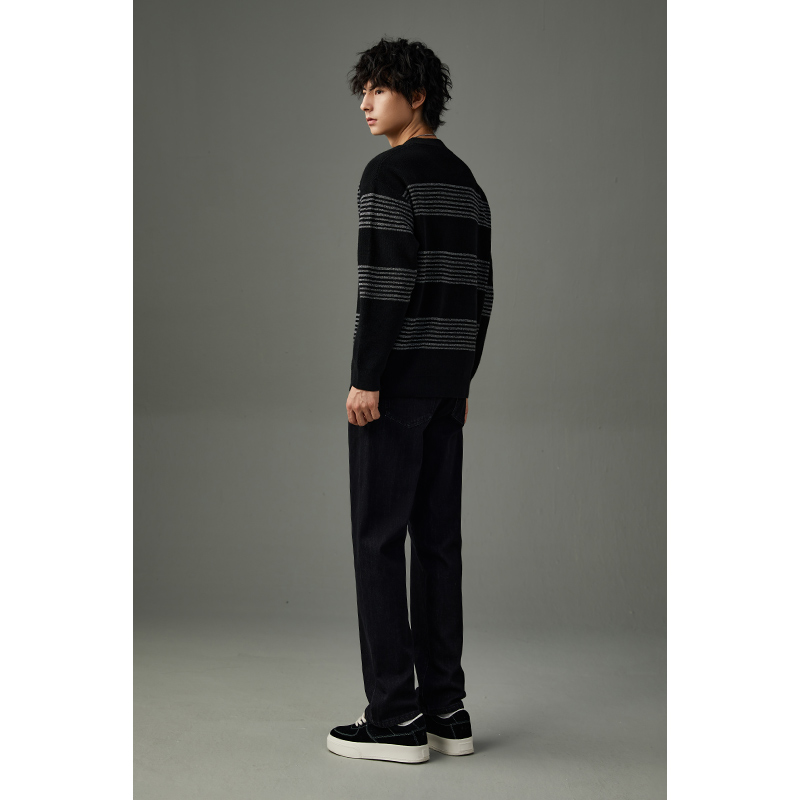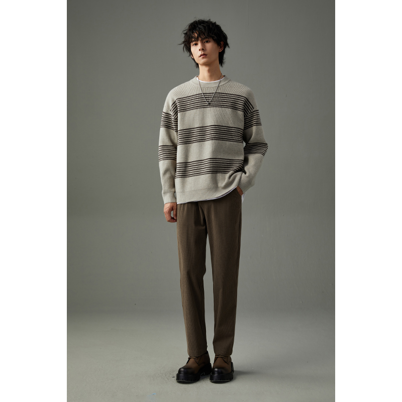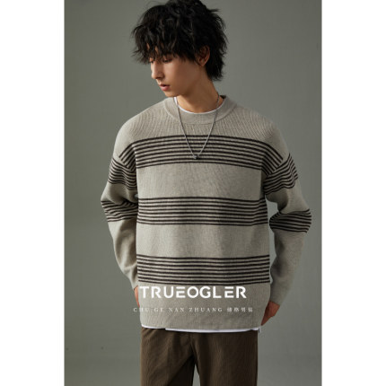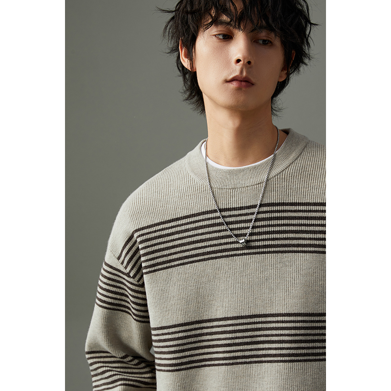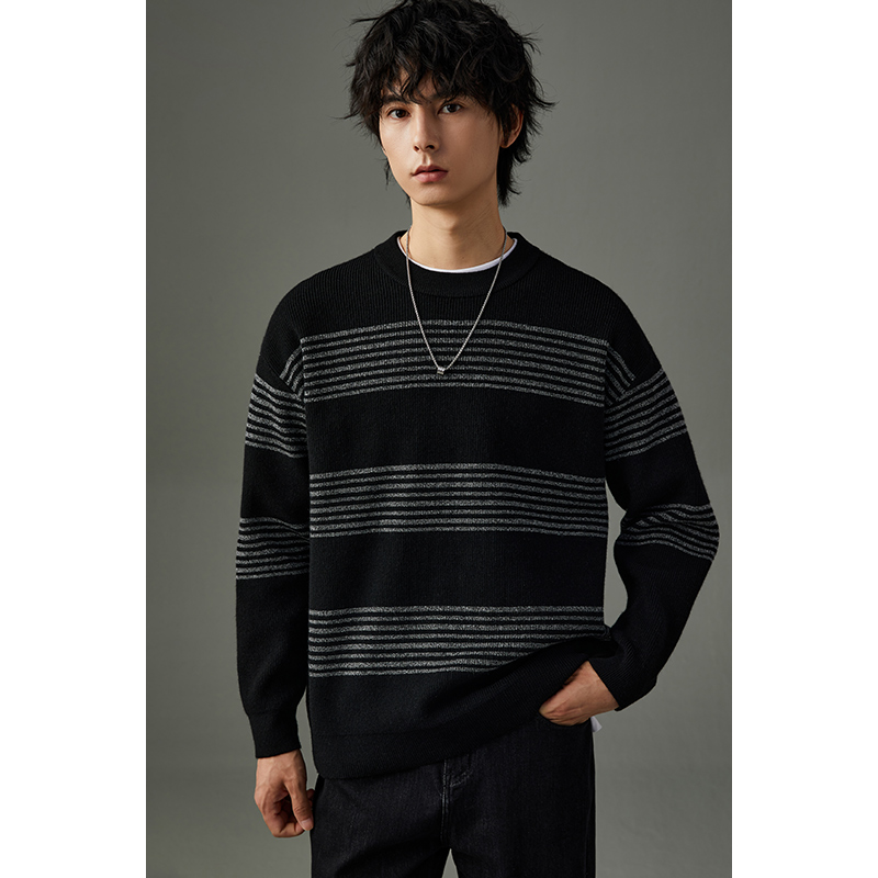 【储格】纤绒纱线条纹针织衫男秋冬季新款2023男士可外穿卫衣毛衣