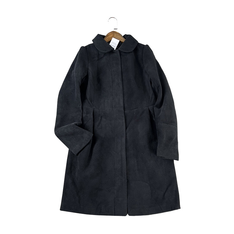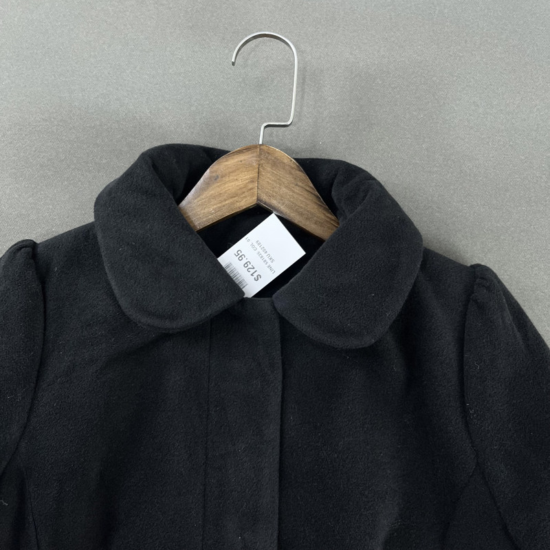 原 澳洲单 129澳元 秋冬黑色修身中长款娃娃领毛呢大衣呢子外套女