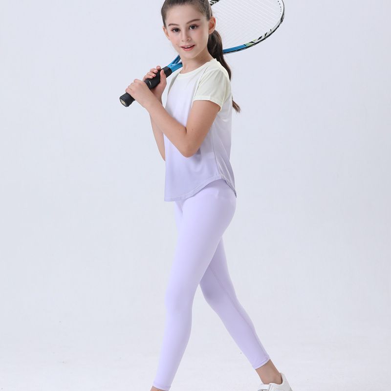 冰丝夏季户外运动裤骑行防晒短袖女孩儿童瑜伽服套装健身衣