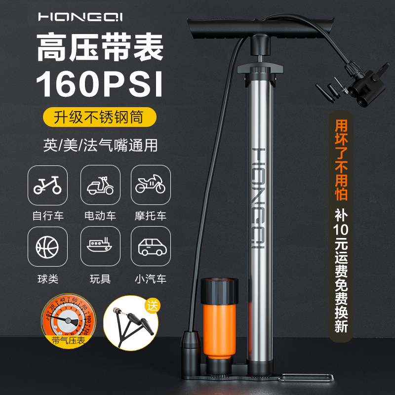 红旗官方旗舰店自行车打气筒电动车高压充气泵游泳圈篮球家用通用