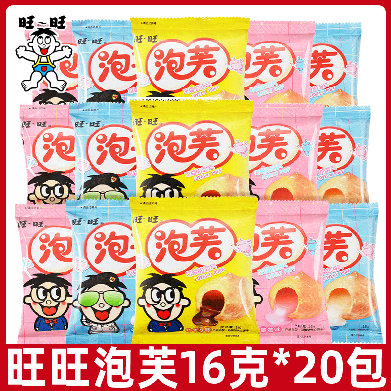 旺旺泡芙16g*20包脆皮奶油夹心爆浆丸子饼干点心儿童小吃零食批发