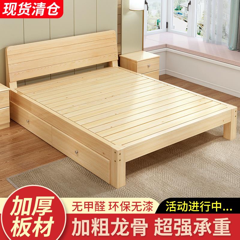 实木床现代简约1.8米主卧双人1.5经济型出租房用简易1.2米单人床