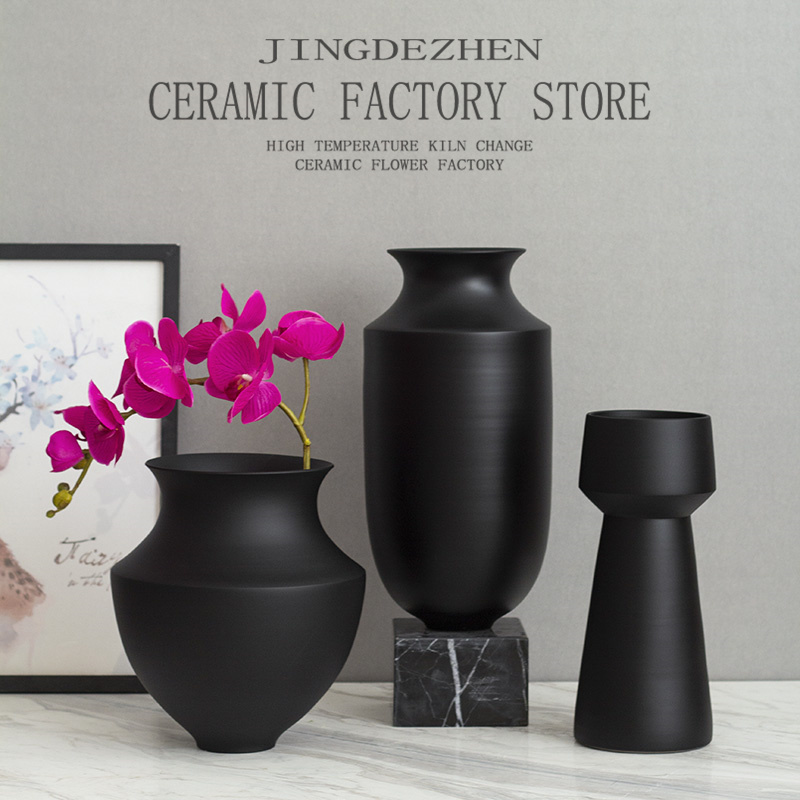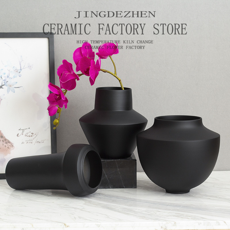 简约现代插花黑色陶罐花瓶客厅酒店样板间陶瓷摆饰高级感装饰品