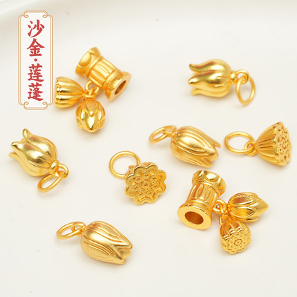 沙金古法两世欢吊坠项链和田玉莲蓬花苞手链配珠diy配件散珠珠子