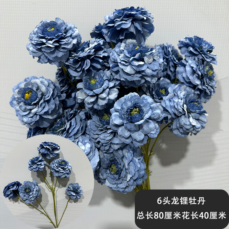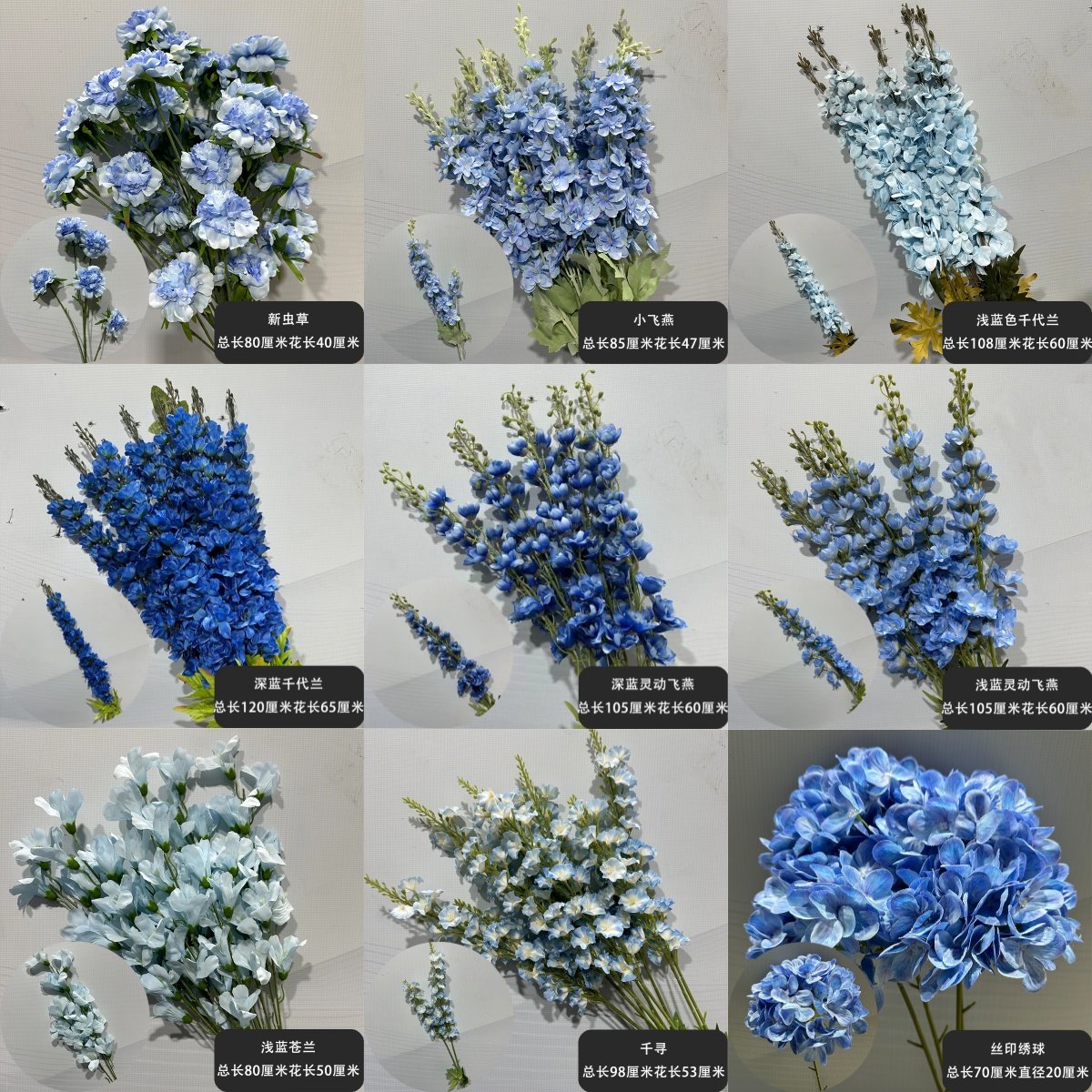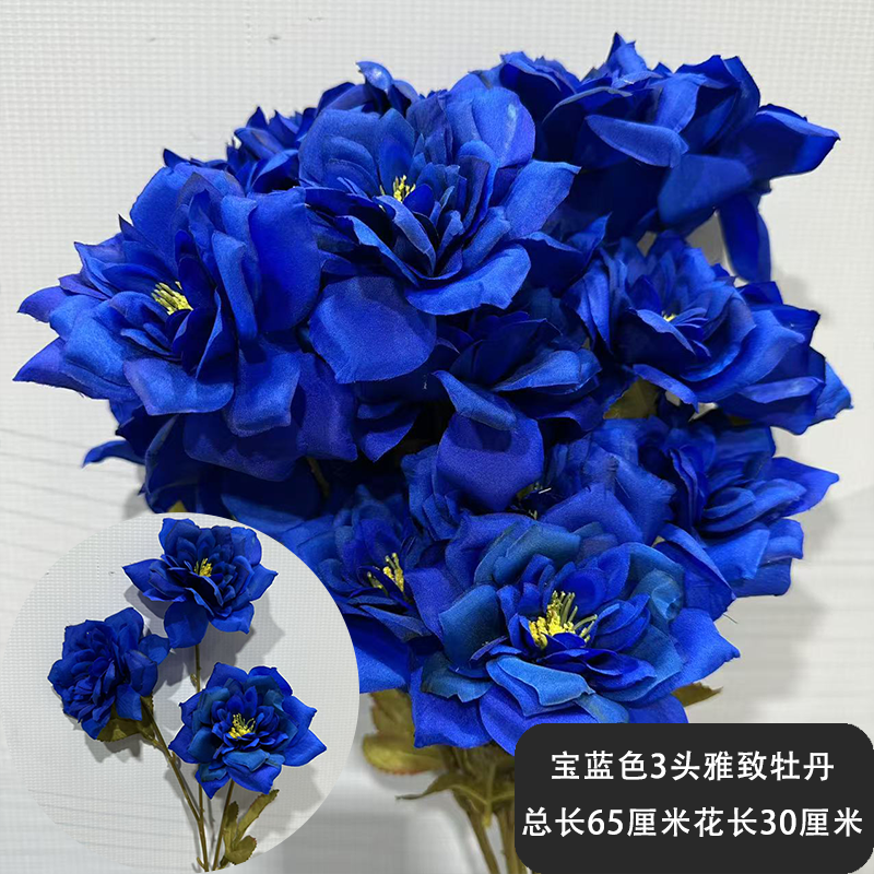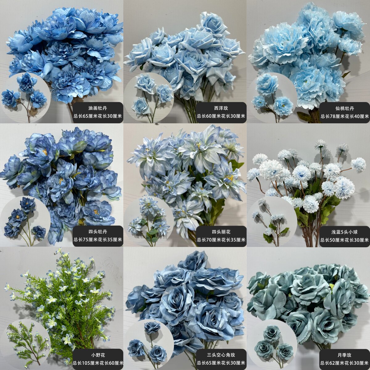 蓝色系仿真花婚庆花材绢花玫瑰洋牡丹假花婚礼堂背景装饰摆设花艺