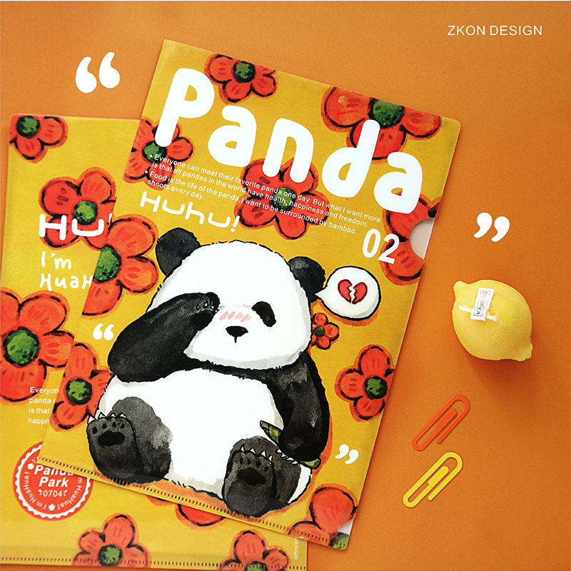 熊猫A4单片夹L型文件夹档案夹文件套加厚档案袋整理夹L夹单页资料夹试卷夹学生简历防水插页透明夹子可爱女