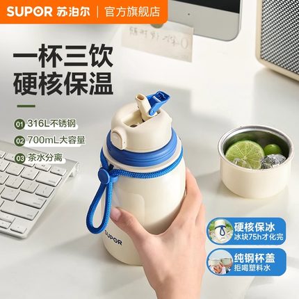 苏泊尔保温杯女生高颜值泡茶礼物杯子冲奶外出咖啡儿童带吸管水杯