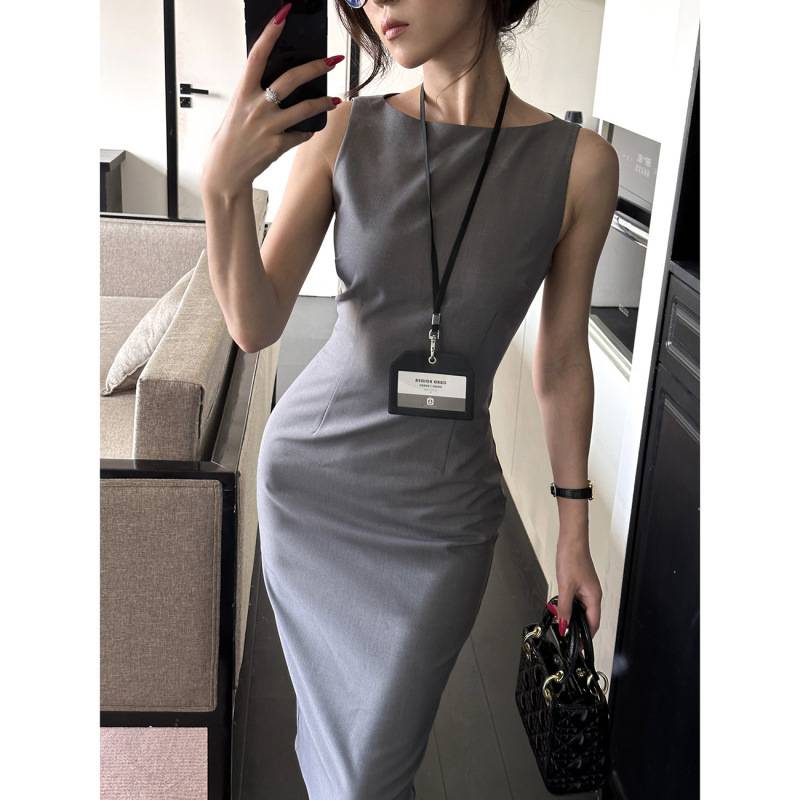 罗哥的羊毛卷 夏季职场海妖风无袖连衣裙女收腰瑞秋裙高智感穿搭