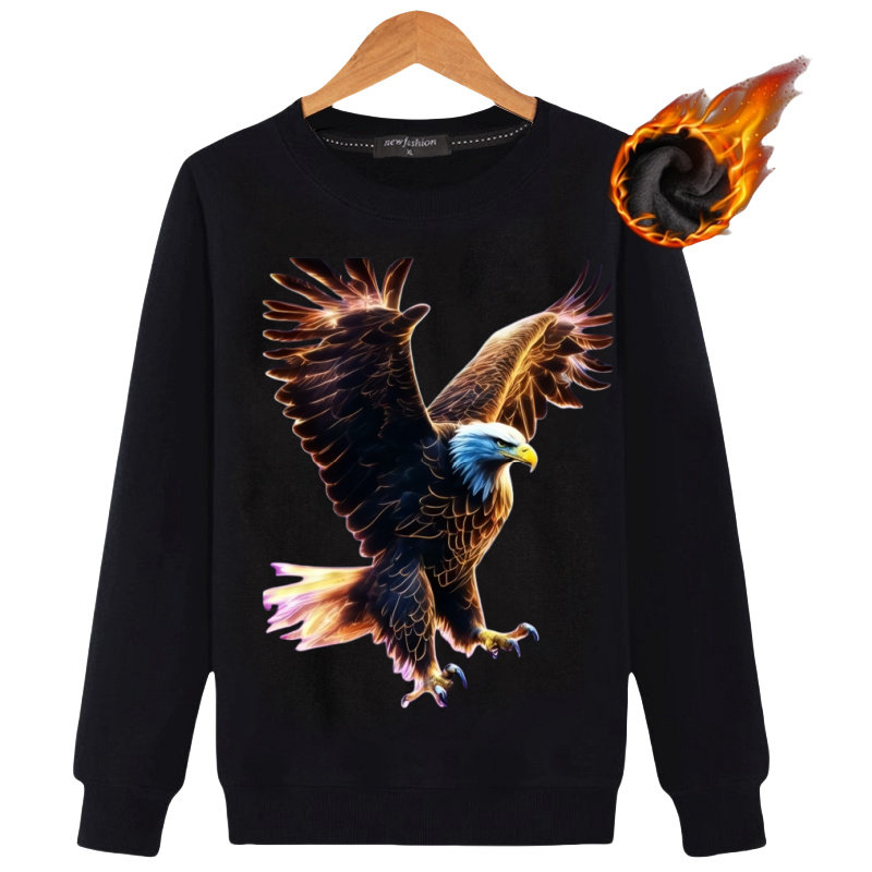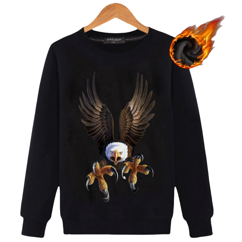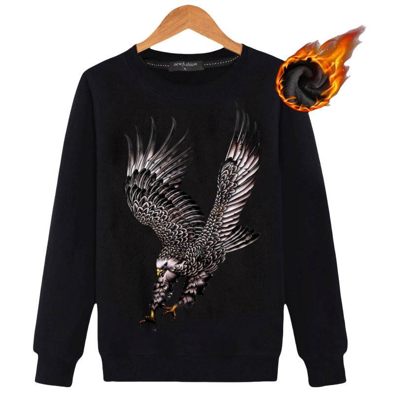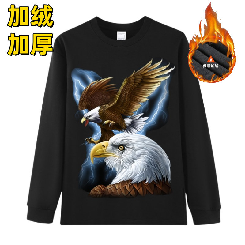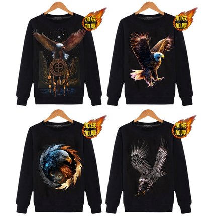 秋款男装3D悬崖老鹰个性潮宽松加绒加厚全棉长袖卫衣衬衫保暖衣
