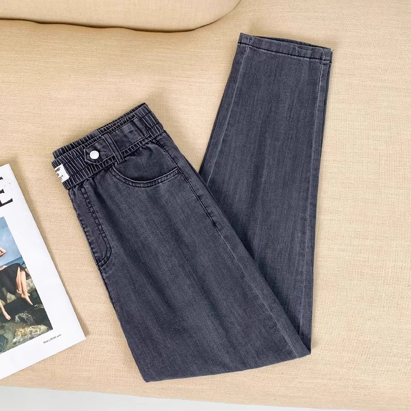 冰丝牛仔裤女2024年新款七分裤夏季薄款天丝哈伦裤高腰宽松九分裤