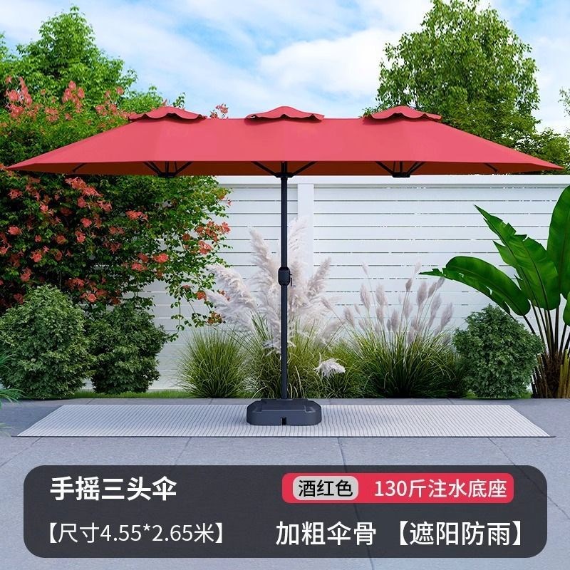 户外遮阳伞庭院伞三头伞罗马伞摆摊室外太阳能带灯大伞沙滩太阳伞