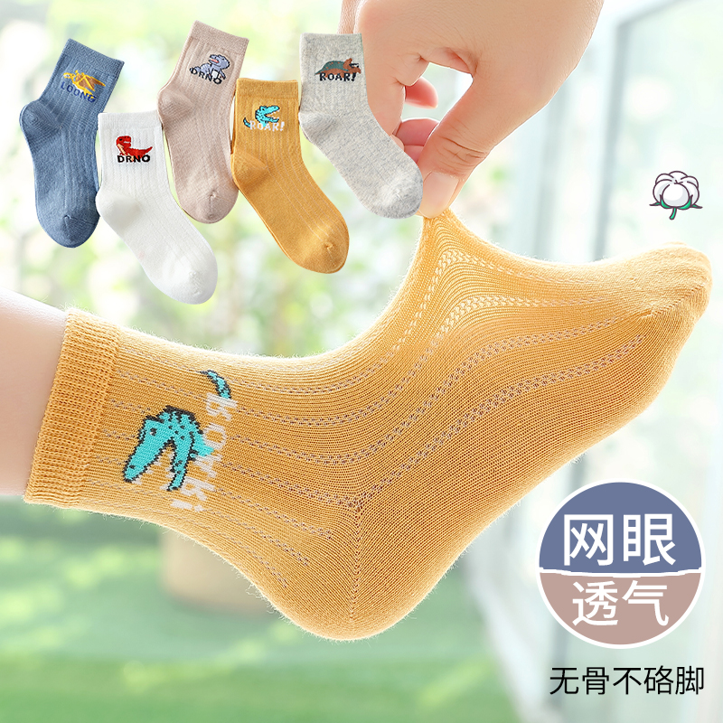 儿童男童袜子春夏季薄款纯棉宝宝卡通恐龙无骨网眼袜透气全棉春秋