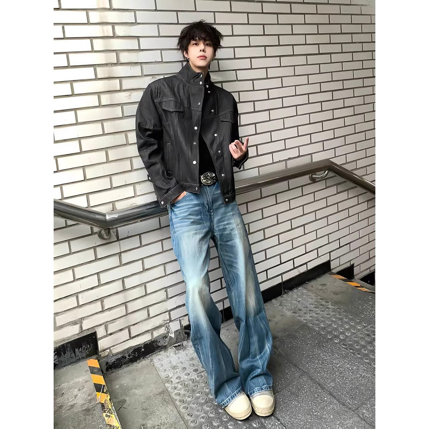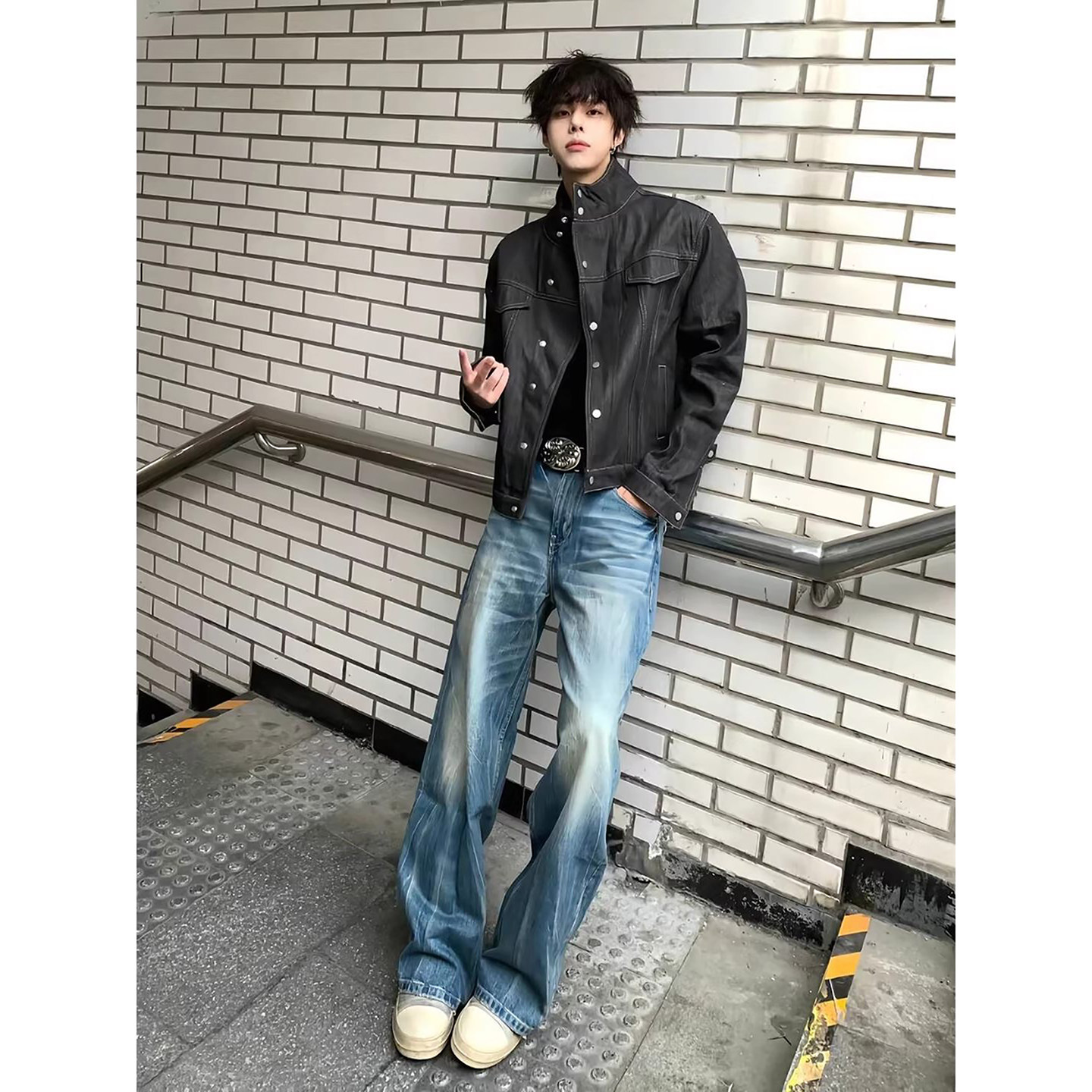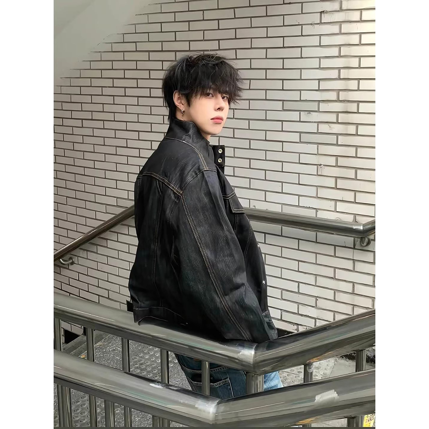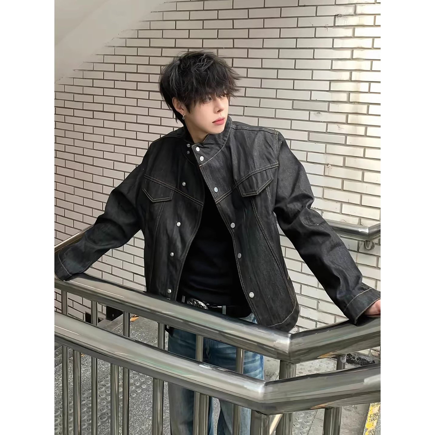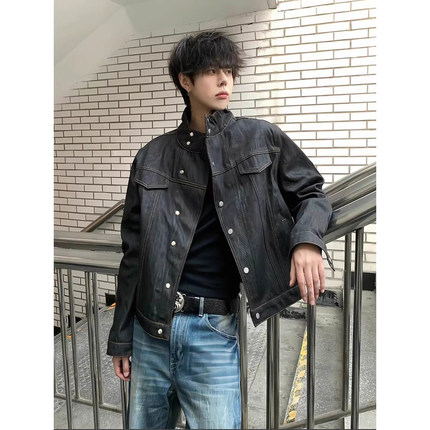 美式复古黑色原牛牛仔外套男款春季水洗短款工装夹克cleanfit上衣
