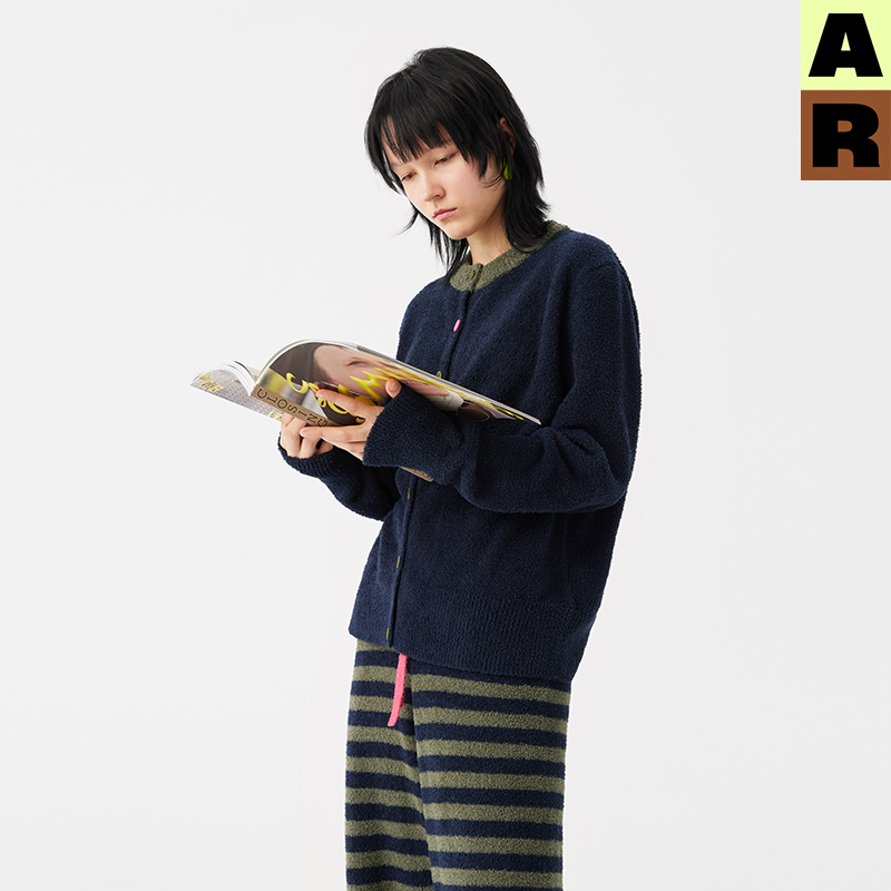 【章若楠同款】AR拼色半边绒家居服套装可外穿开衫睡衣女保暖长袖
