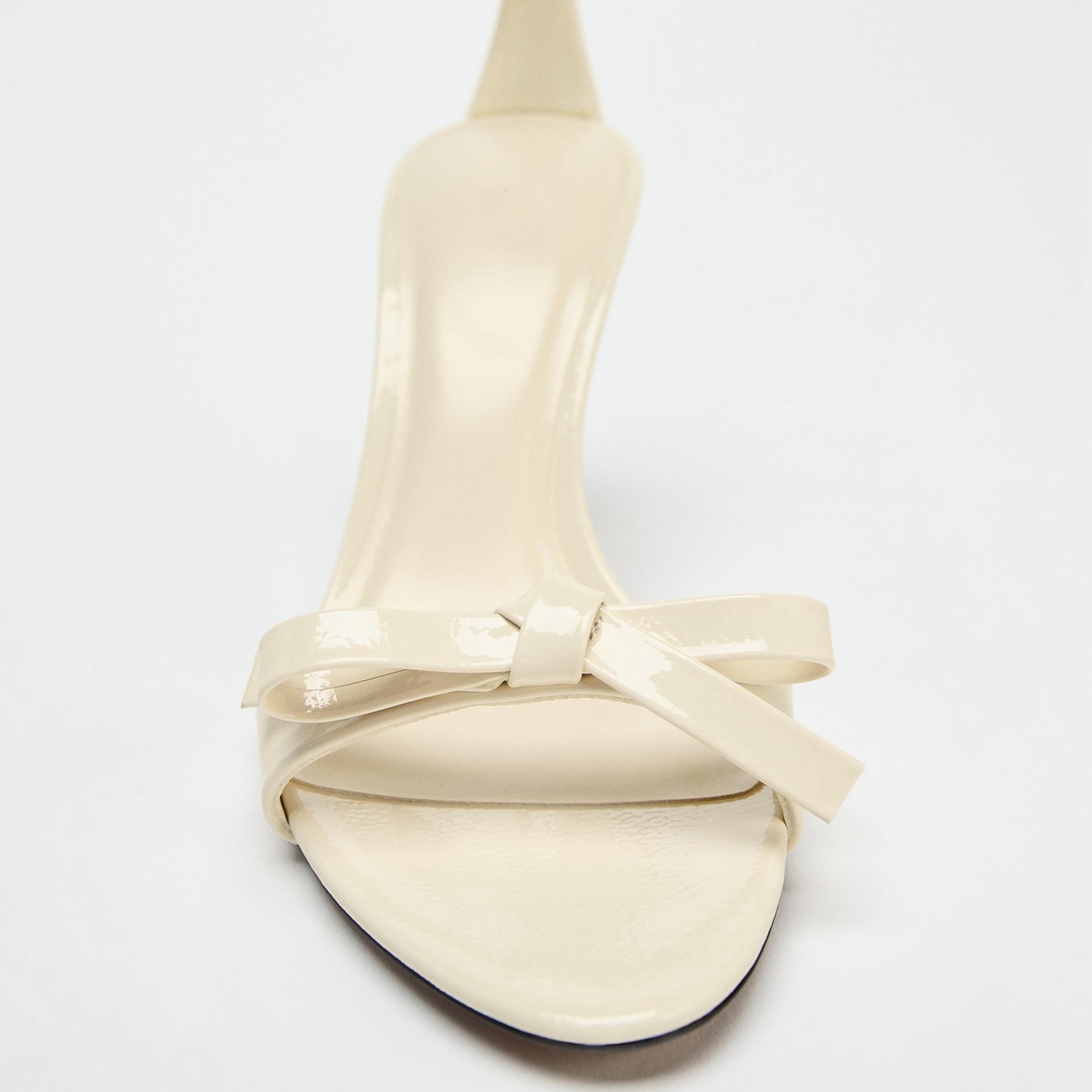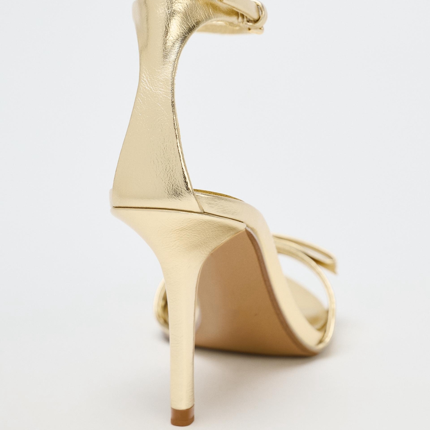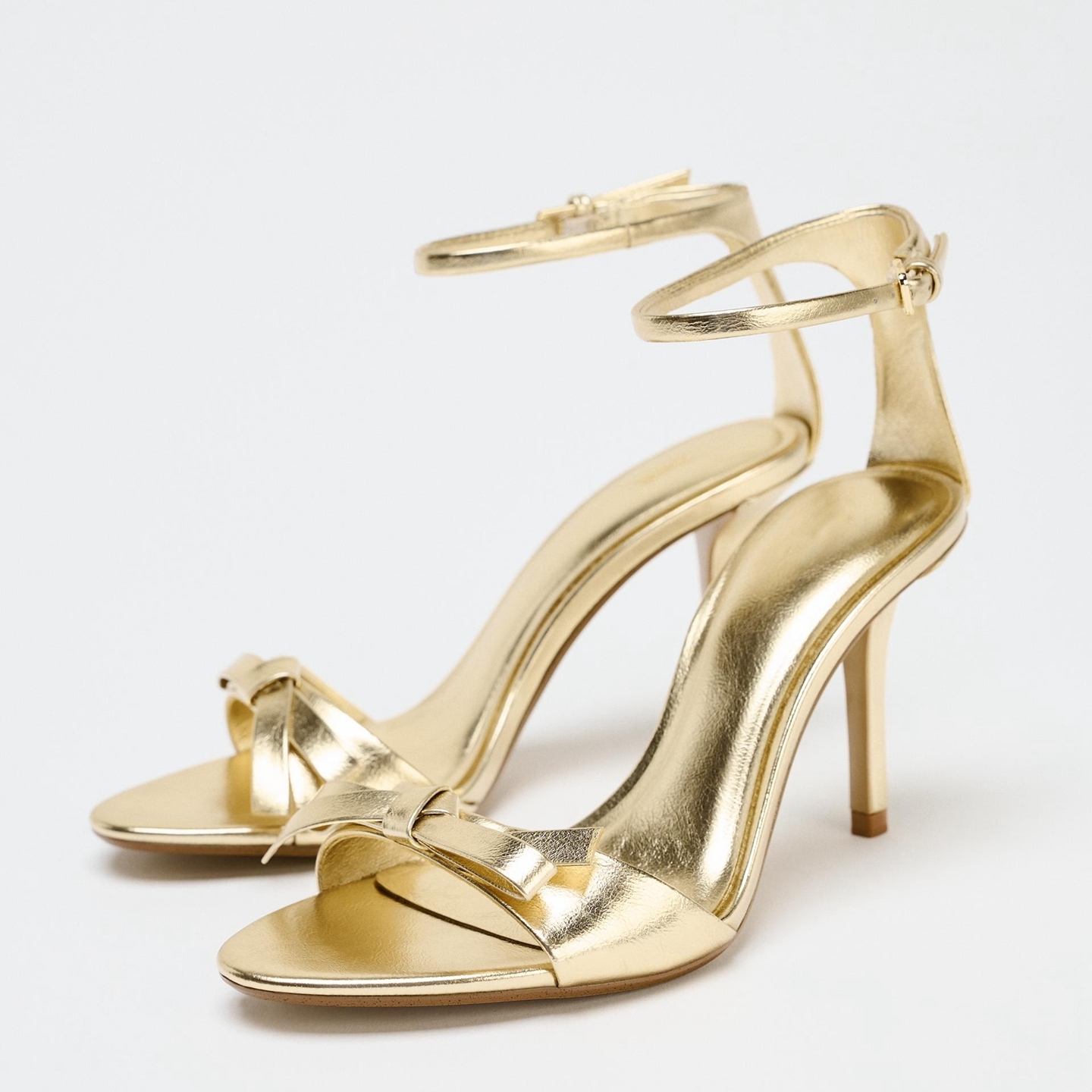 西班牙ZA2025夏季新款时尚高跟鞋镀金属层蝴蝶结细跟露趾气质凉鞋