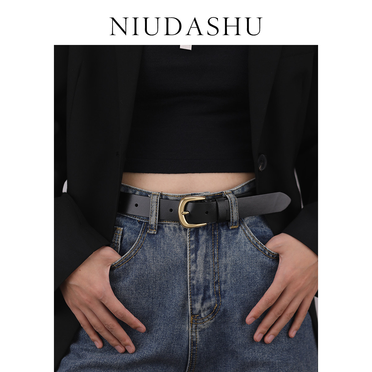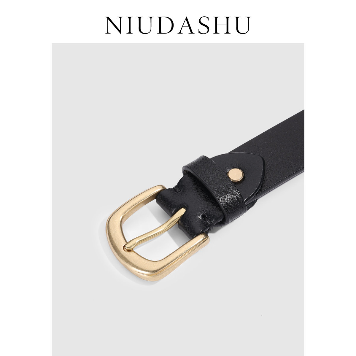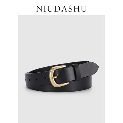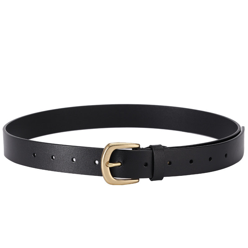 女士皮带女真皮装饰简约百搭韩版小众时髦铜扣配牛仔裤腰带女黑宽