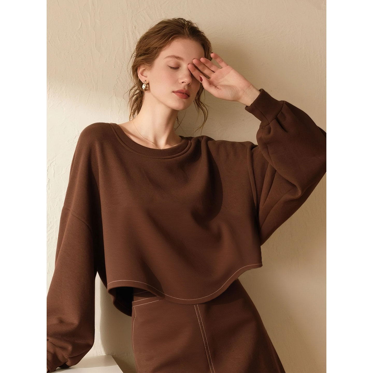 咖色早秋时尚套装女2025秋季新款设计感卫衣高腰半身短裙两件套