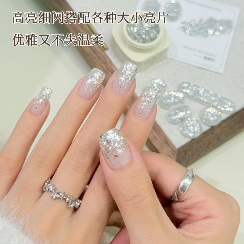 致美艺新款【碎碎银光】繁星高密爆闪百搭亮片璀璨星光美甲甲油胶