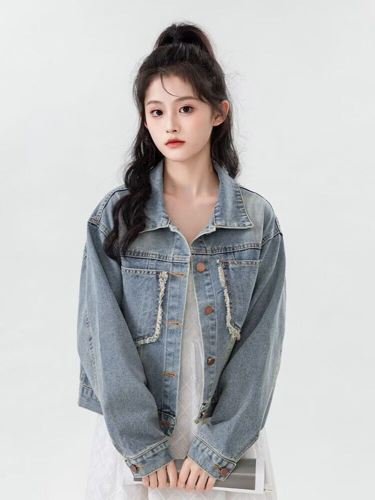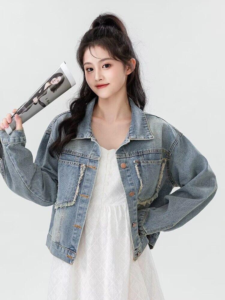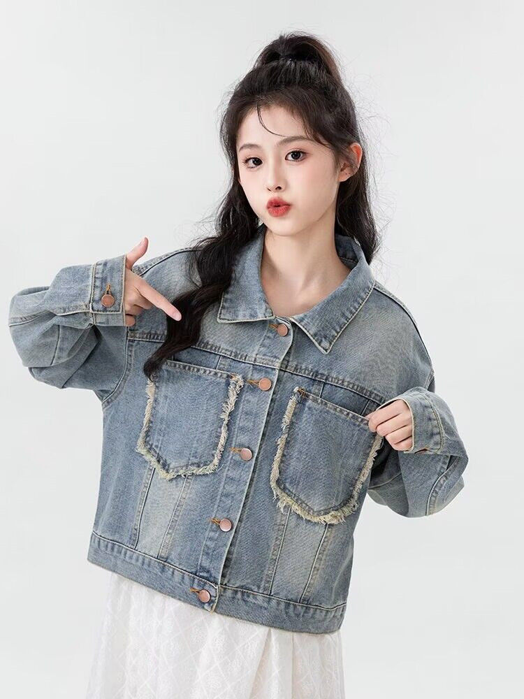 2024春季新款复古牛仔外套女春秋韩版毛边短款夹克休闲学生上衣潮