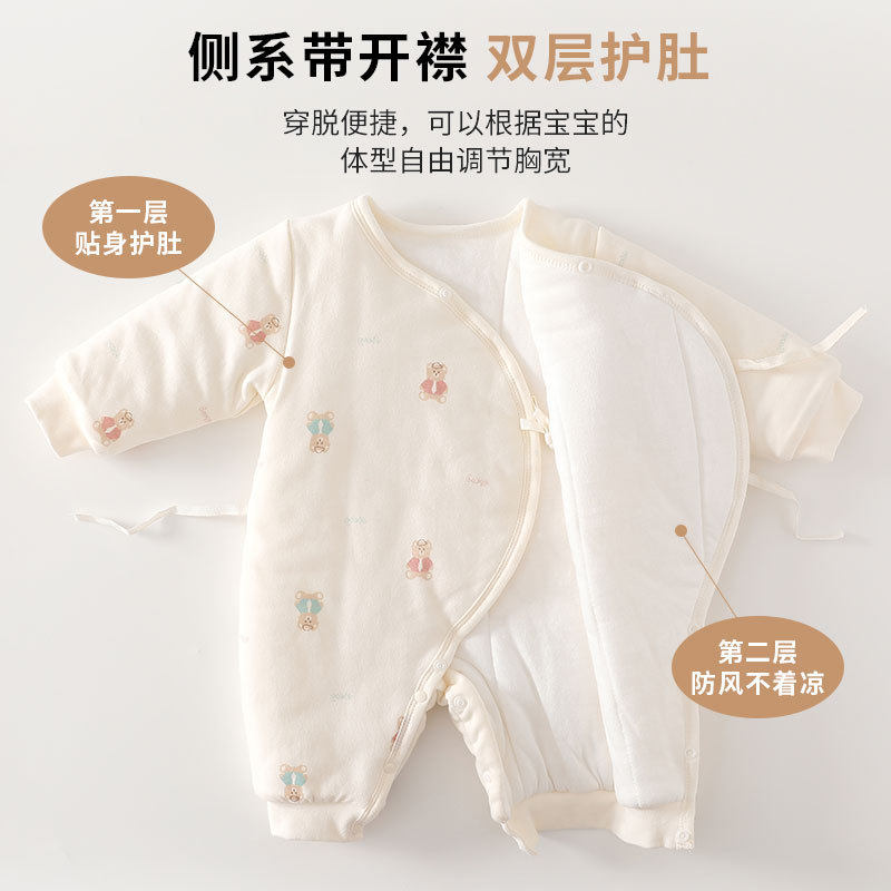 婴儿夹棉连体衣秋冬季120克棉衣棉服男女宝宝冬装纯棉a类哈衣爬服