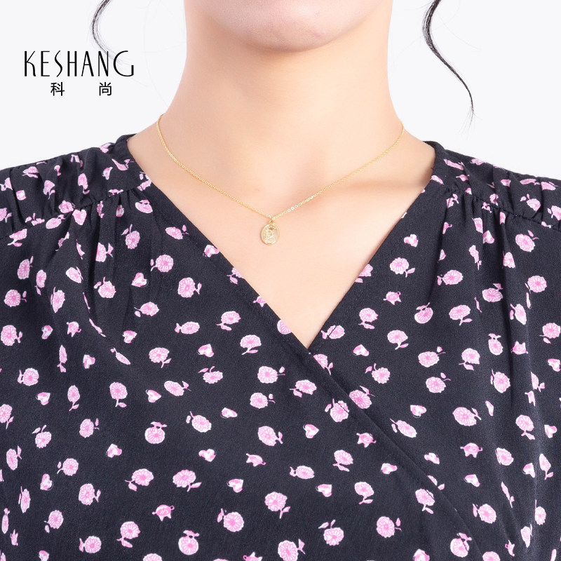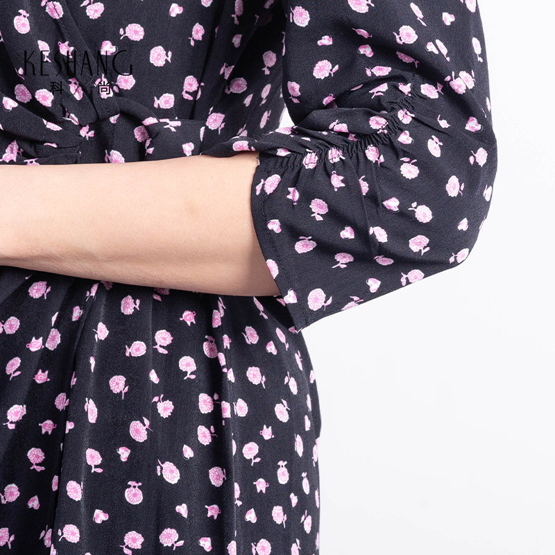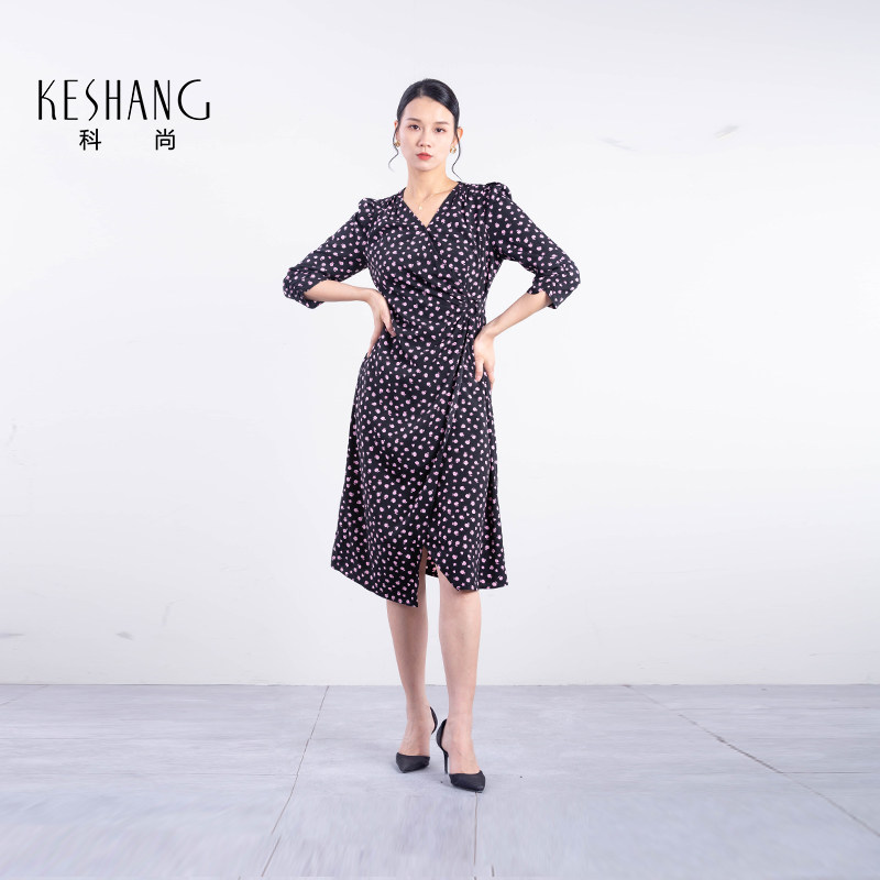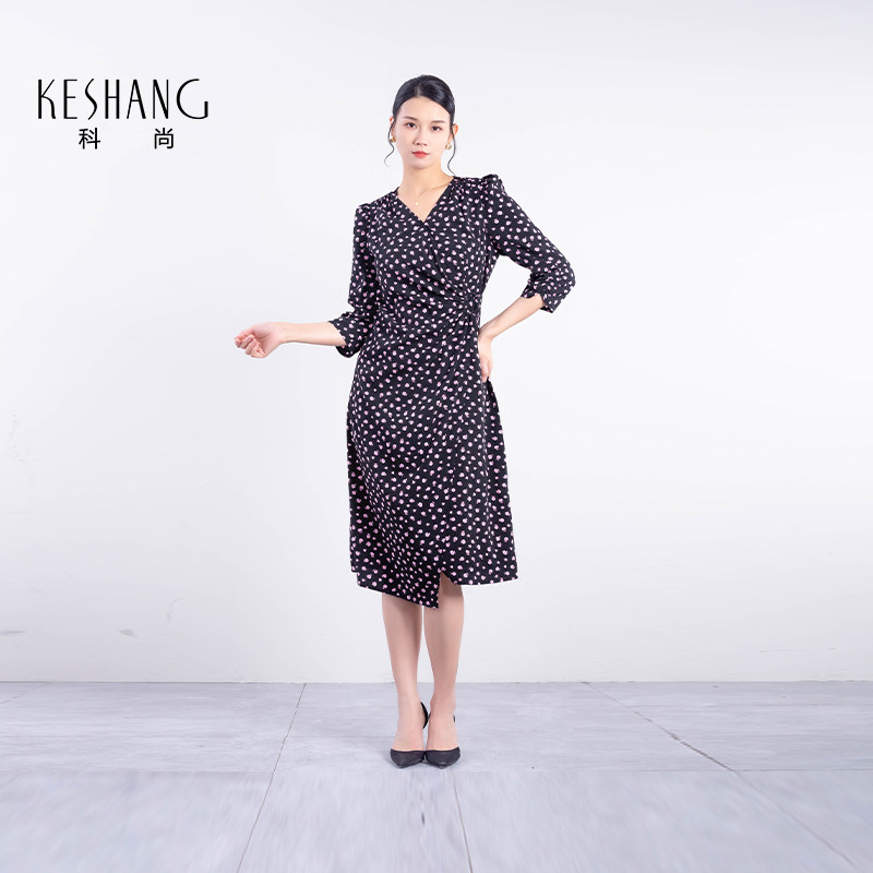科尚妈妈装v领连衣裙女2026年春新款气质收腰长裙七分袖雪纺裙子