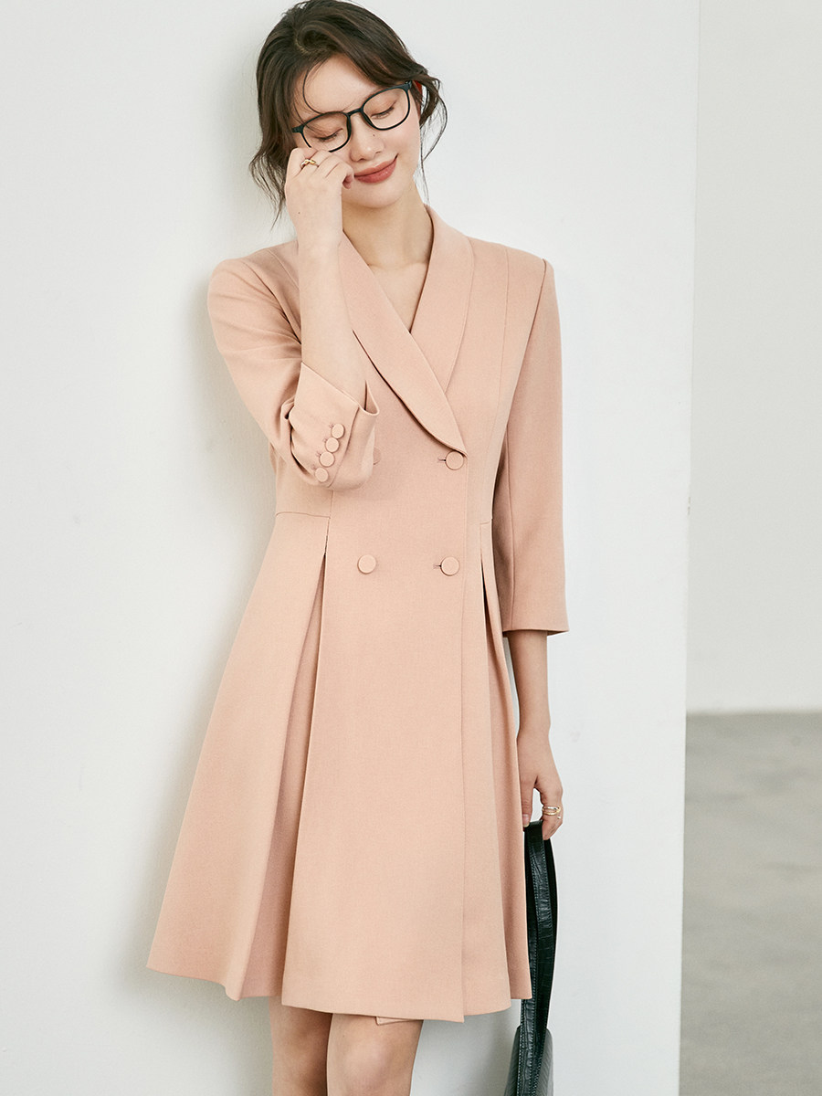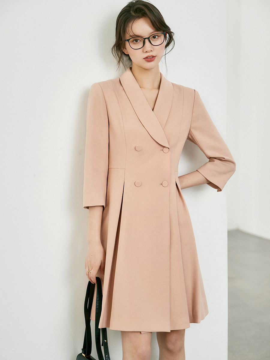 通勤A字裙纯色西装连衣裙