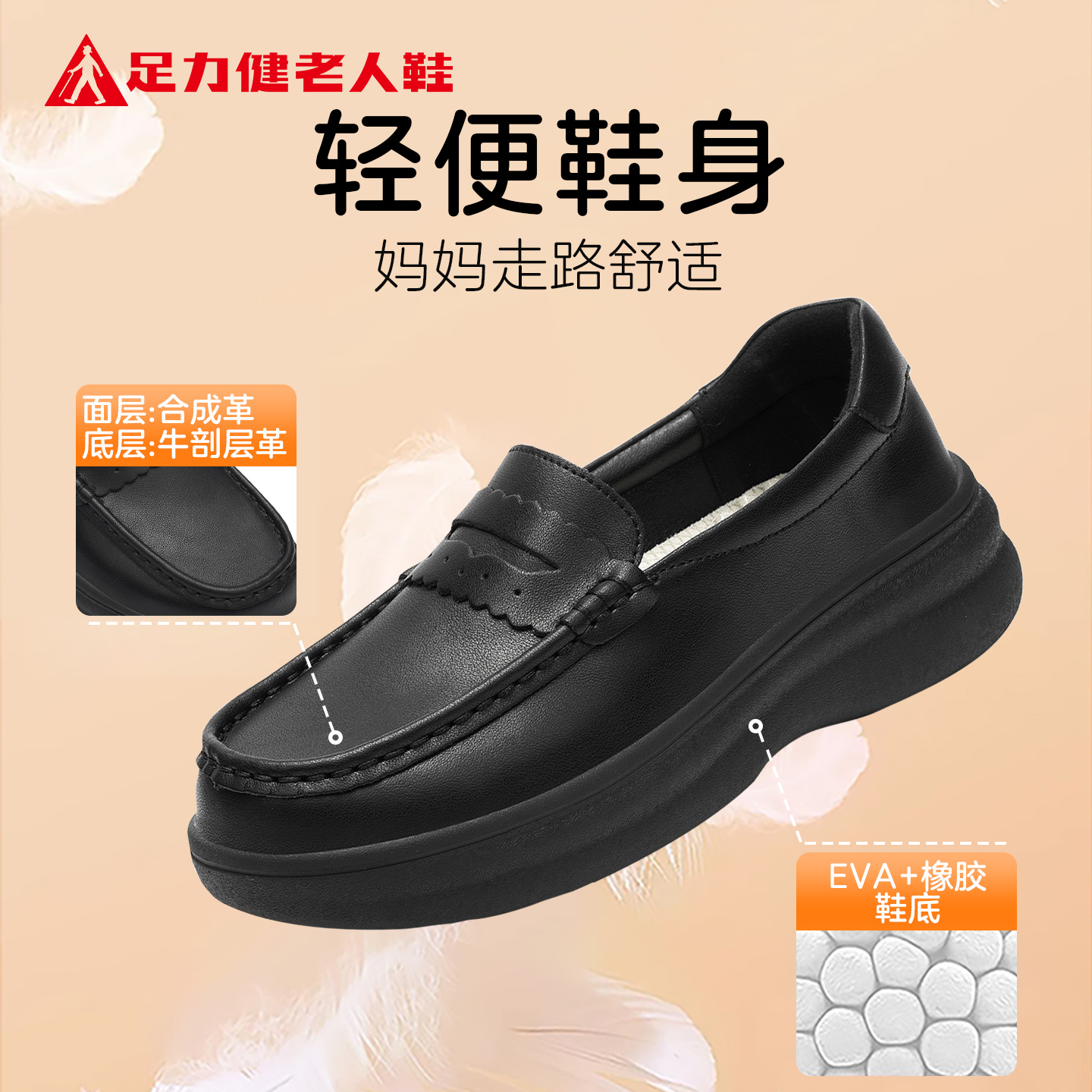 足力健老人鞋2025秋季新款百搭圆头乐福女鞋厚底黑色英伦风小皮鞋