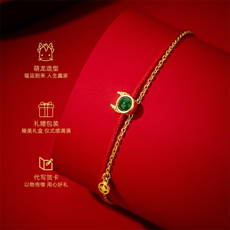 翡翠925银龙年红绳手串