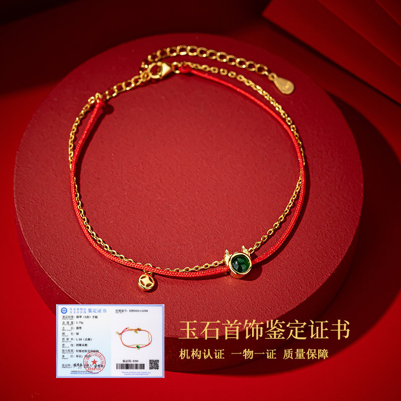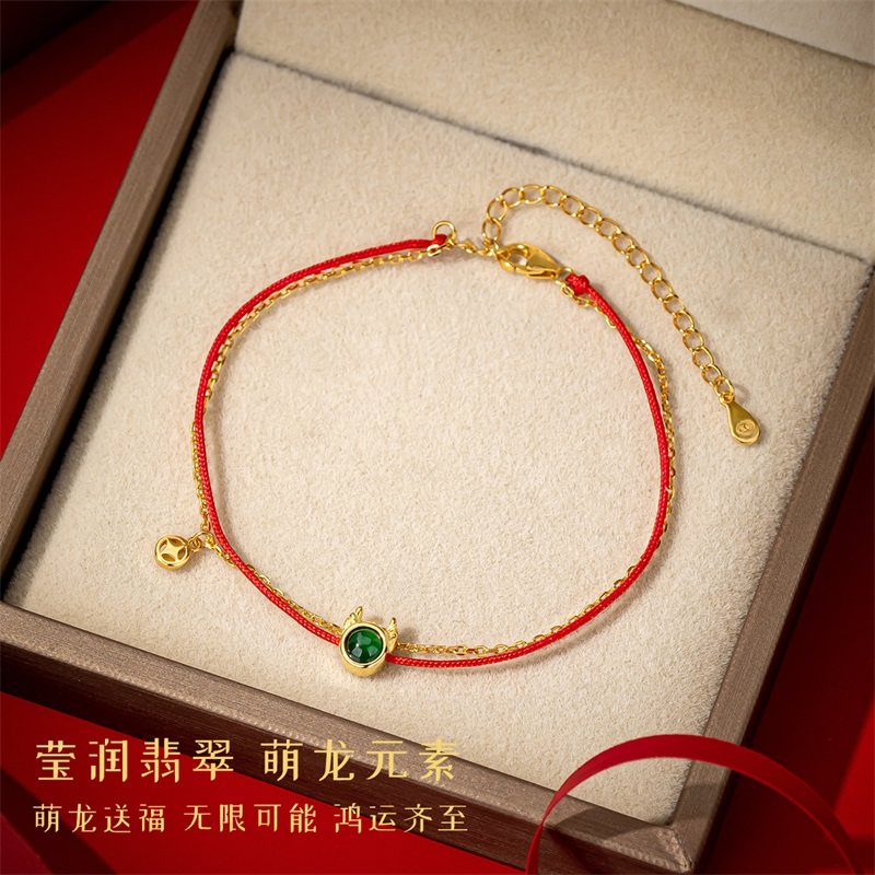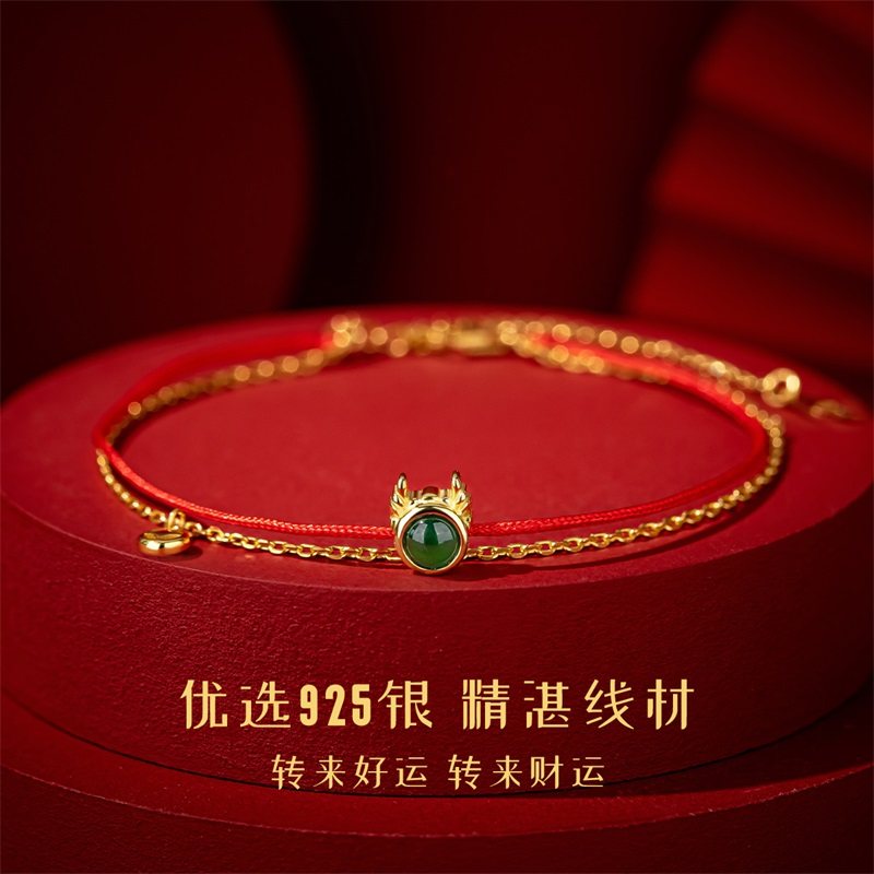 翡翠925银龙年红绳手串新年银手链女生轻奢小众精致2025年新款