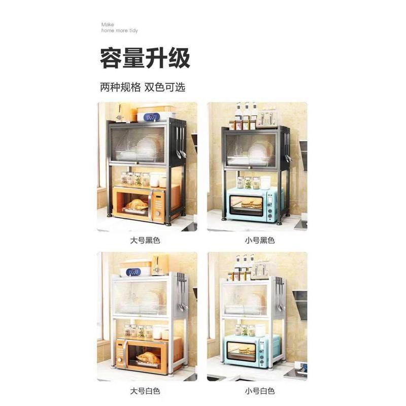 厨房台面式置物架碳钢多层带柜门橱柜封闭式微波炉烤箱收纳架厂家