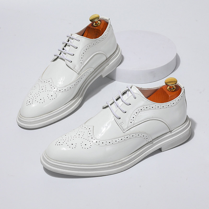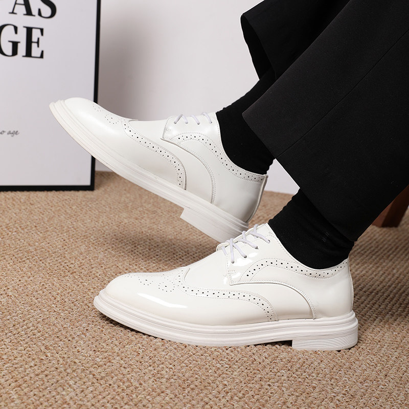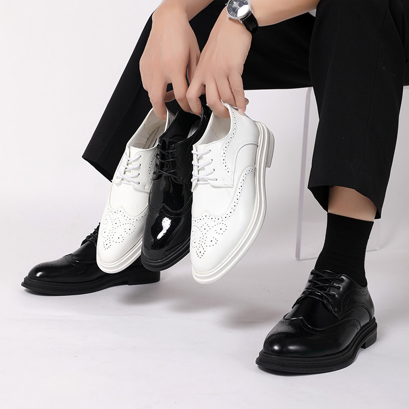 布洛克雕花男鞋韩版英伦潮流内增高4cm6厚底增高休闲皮鞋男小白鞋