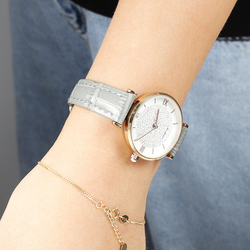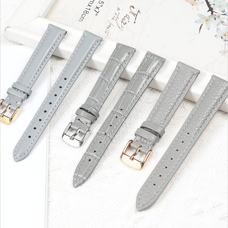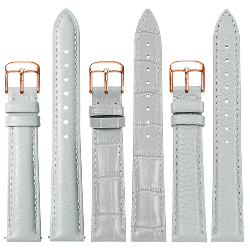 灰色真皮手表带男女蝴蝶扣适配watchGT2/3/4 PRO 手环B3B5B6B7 荣耀 施华洛世奇化石天梭阿玛尼天王手表链软