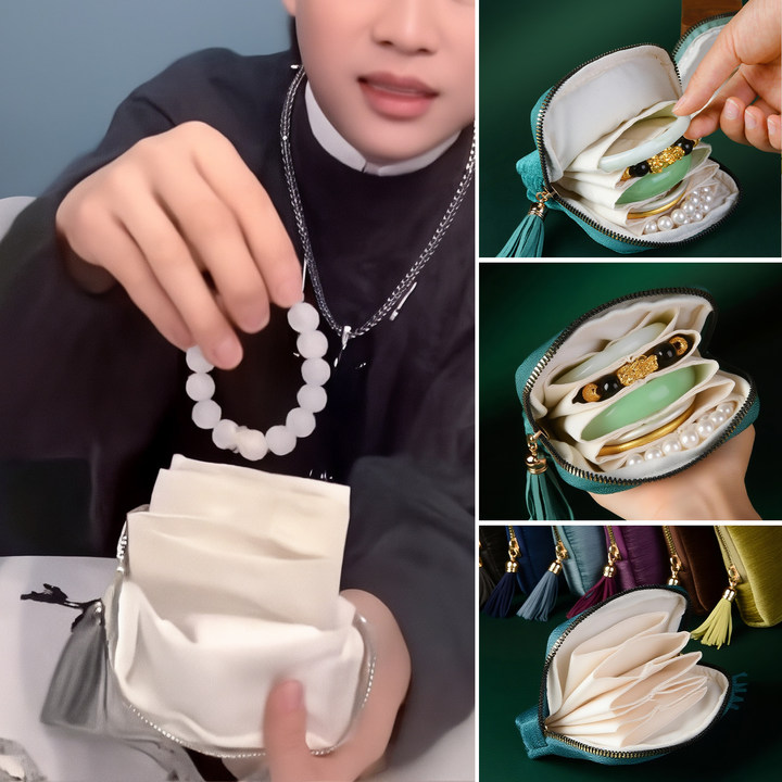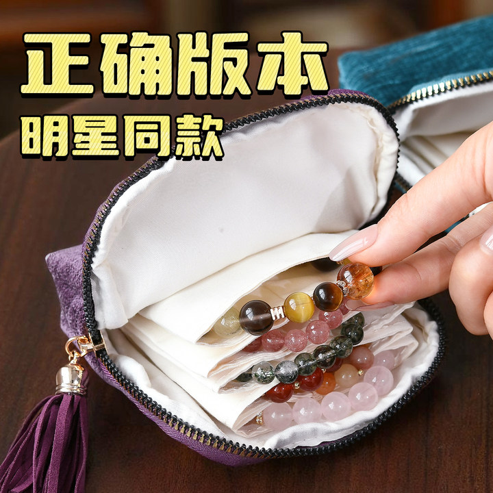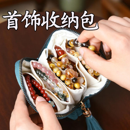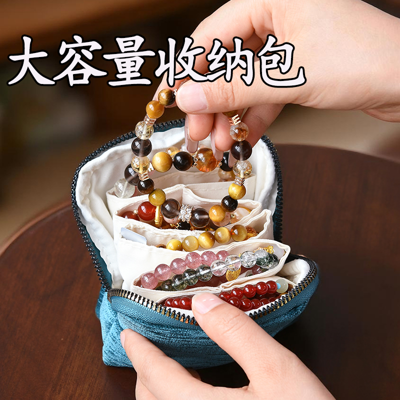 首饰收纳包大容量手串手镯项链绒布分层防缠绕随身饰品拉链收纳袋