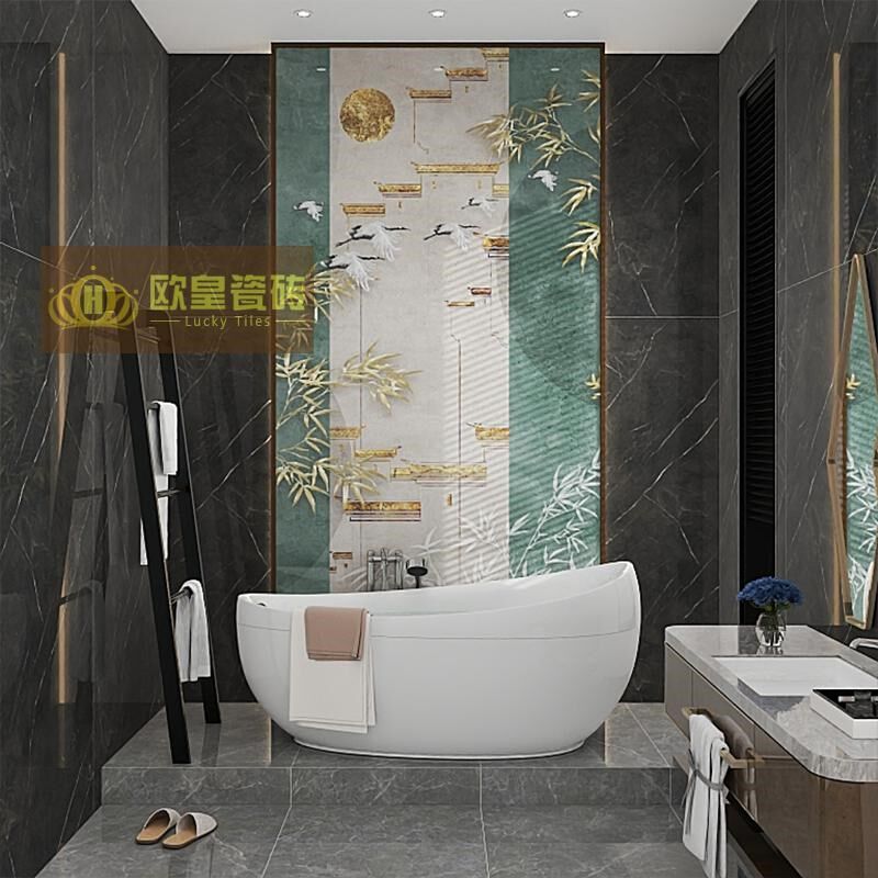 卫生间瓷砖背景墙竹子新中式典雅浴室淋浴墙花片岩板瓷砖玄关花砖