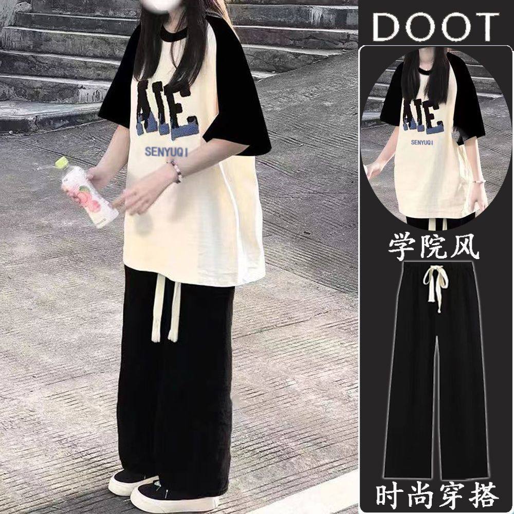 女童套装夏季短袖大童学生风T恤宽松休闲阔腿裤网红穿搭两件套潮