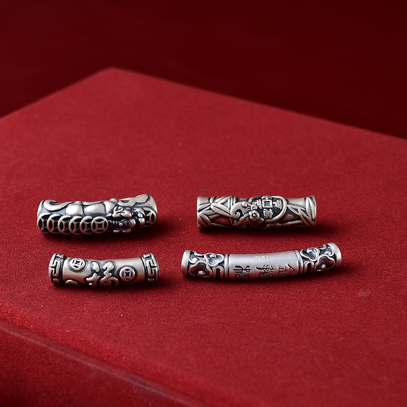 真安顺s999足银弯管纯银桶珠半手镯本命年红绳手链编织锁骨链配件