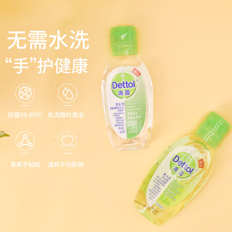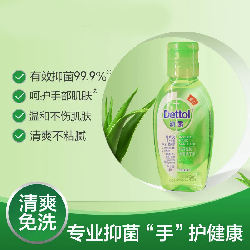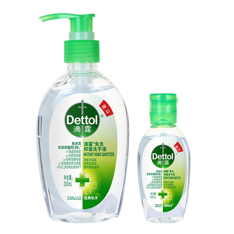 滴露酒精免洗洗手液50ml杀菌抑菌无水洗手户外便携松木味