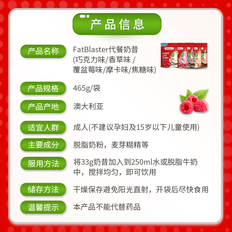 澳洲fatblaster代餐奶昔膳食纤维素低卡低脂饱腹代餐粉新品袋装