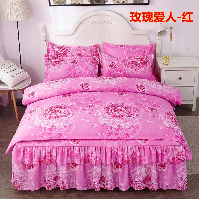 床裙式四件套被罩磨毛床单被套床罩1.2三件套1.5m1.8米2.床上用品