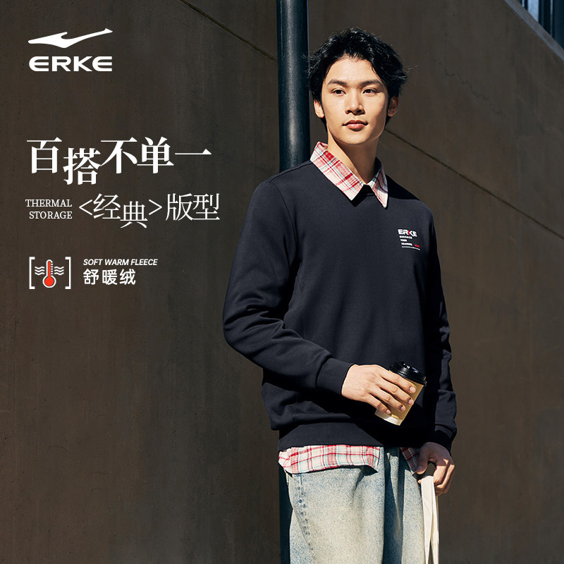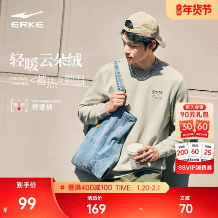 鸿星尔克加绒卫衣男款2025冬季新款男士运动休闲男生圆领长袖衣服