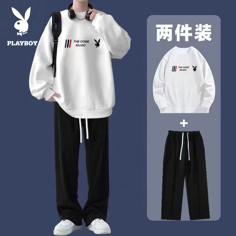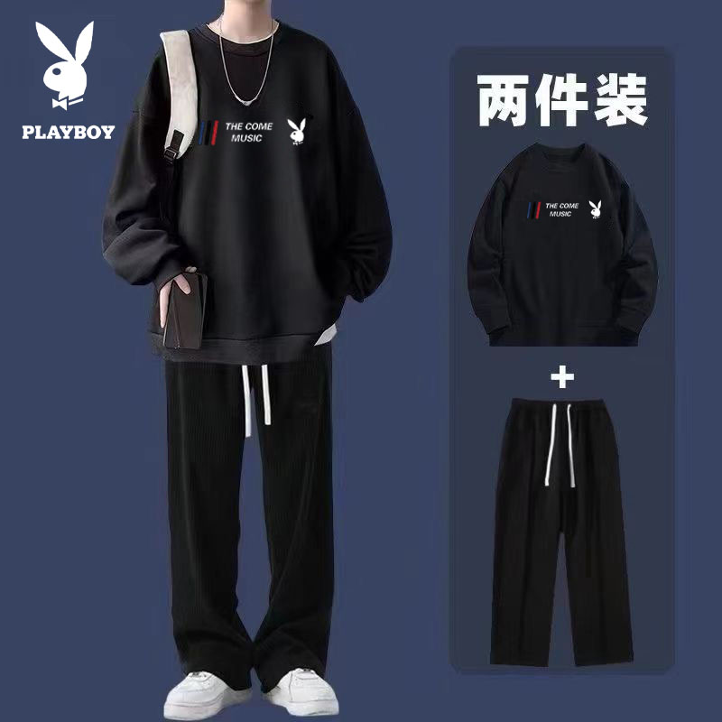 花花公子男两件套装2025秋冬新款宽松休闲圆领卫衣卫裤穿搭运动衣