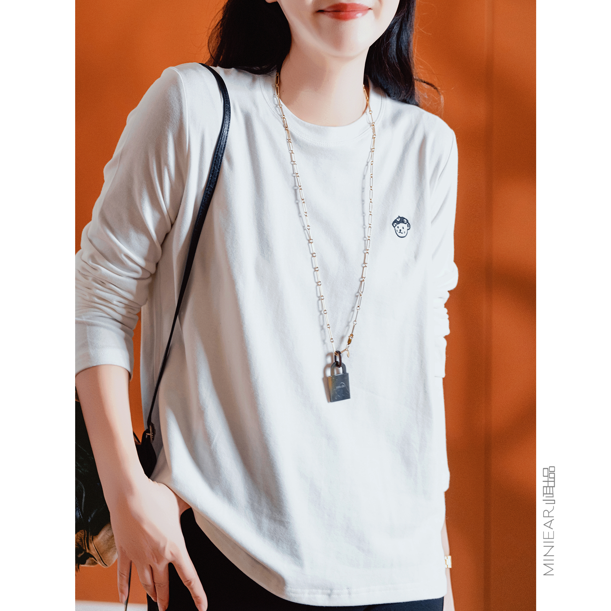 小耳出品 重工针织棉/磨毛软糯/减龄刺绣 宽松百搭显瘦简约长袖T