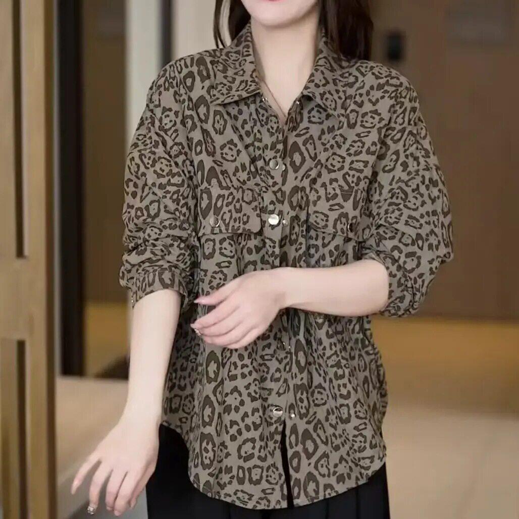 玟若服饰甄选店女装复古豹纹衬衫春秋女士款气质显瘦衬衣百搭上a2