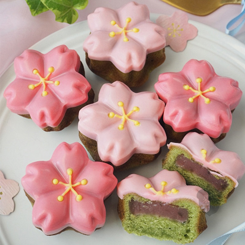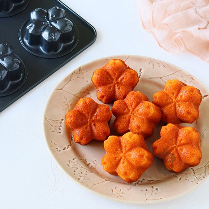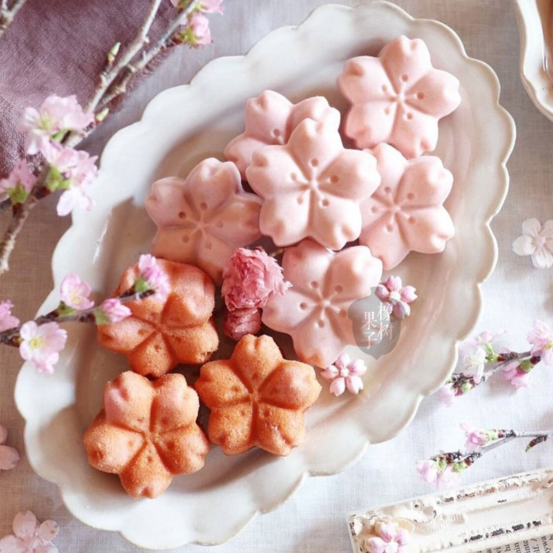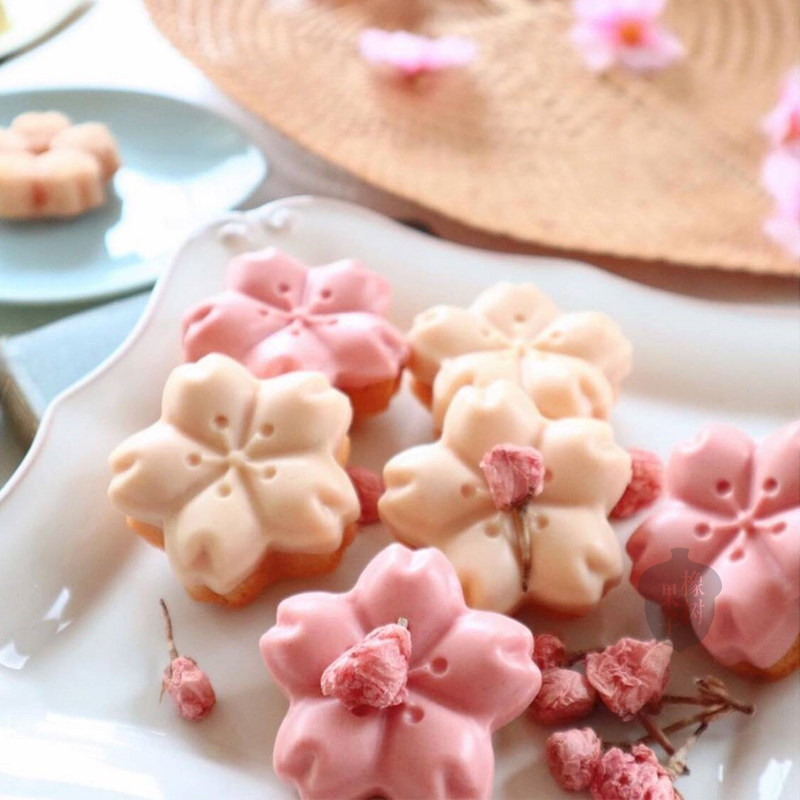 6连樱花玛德琳烤盘 ins风立体桃花蛋糕模具 日式花朵家用烘焙工具