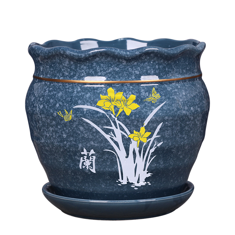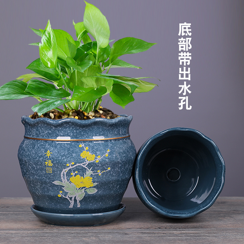 新款花盆陶瓷带托盘简约新中式阳台绿植兰花特价清仓盆栽多肉花盆