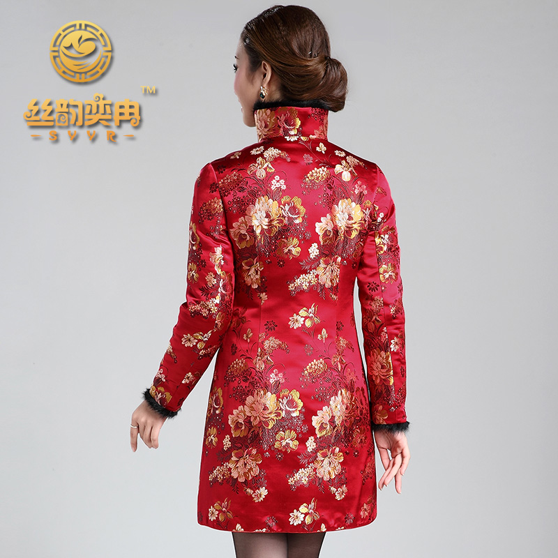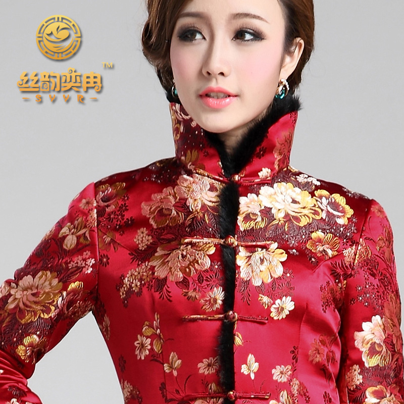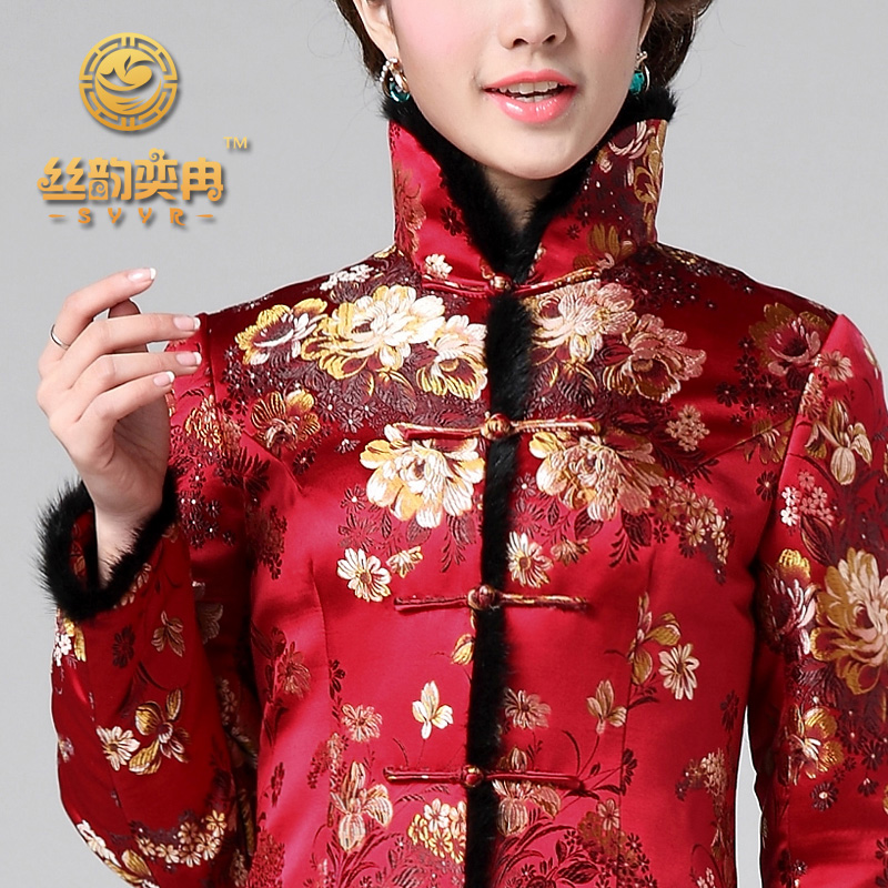 丝韵奕冉妈妈貂毛修身棉袄气质复古外套蚕丝棉衣女士真丝棉服冬装
