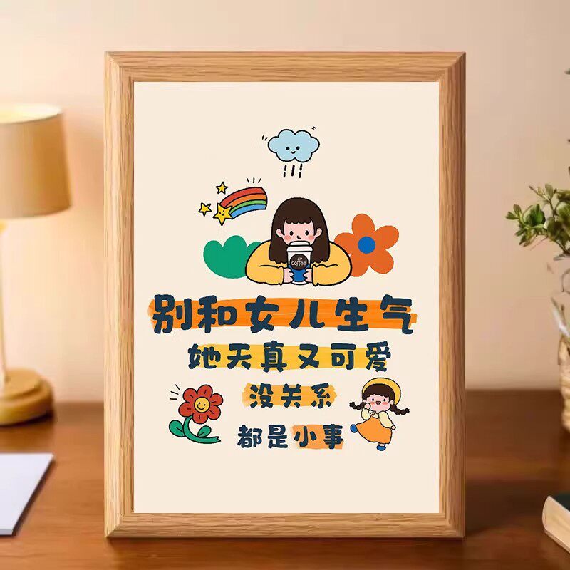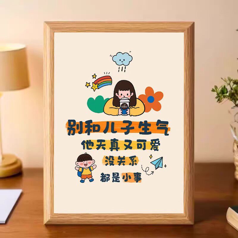 别和孩子较劲卡通可爱木质相框摆件桌面装饰文字画框创意收纳摆台
